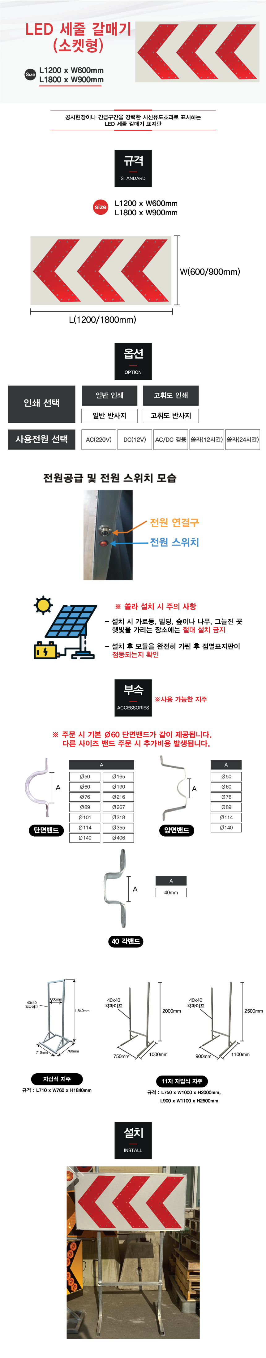 교통표지판/발광형표지판 갈매기표지판(LED)/기타 규격 제작가능] LED세줄갈매기