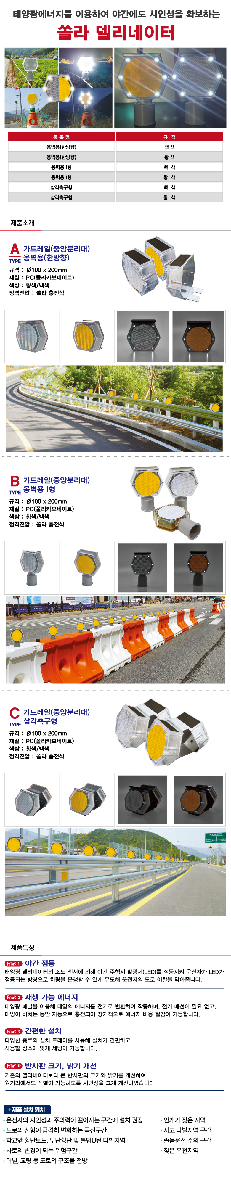 모델명 쏠라 델리네이터-옹벽용(한방향)